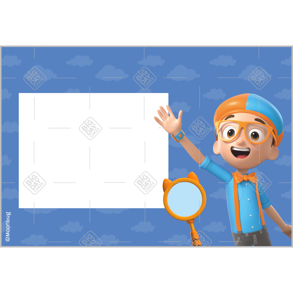 Blippi Happy Birthday cake topper frame with a space for photo and personal message