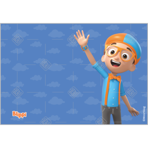Cake topper featuring Blippi with a space for personal message.