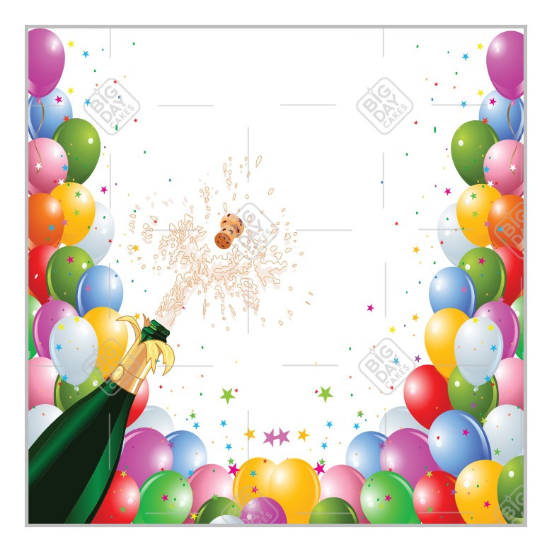 Champagne and balloons topper - square