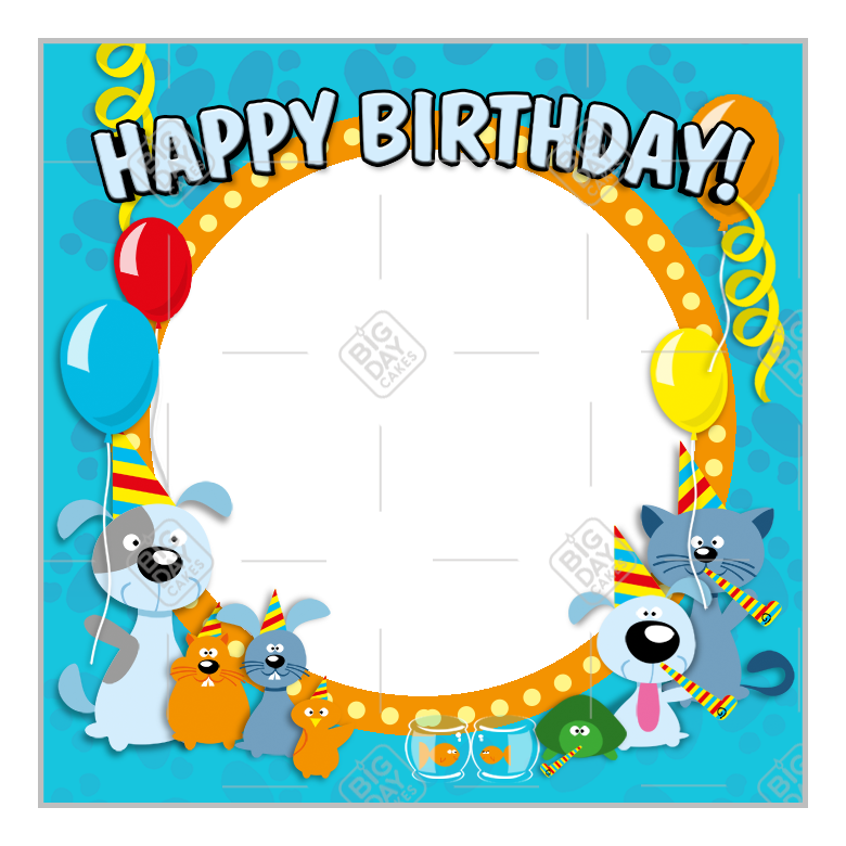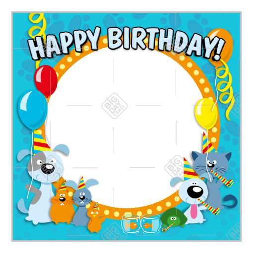 Happy Birthday animals blue frame - square