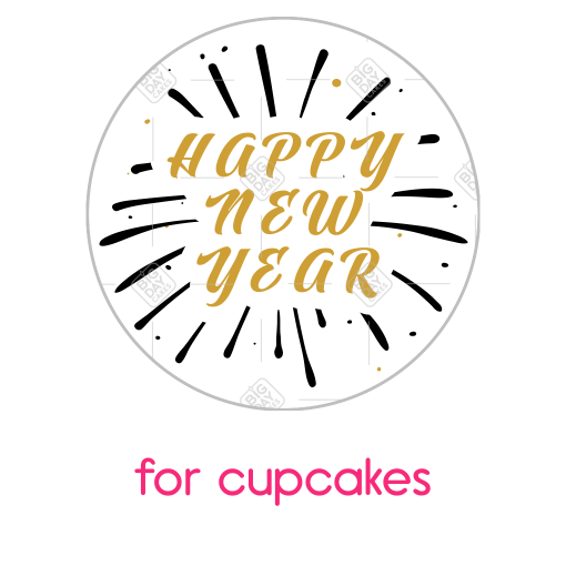 Happy New Year golden ribbon frame - cupcakes