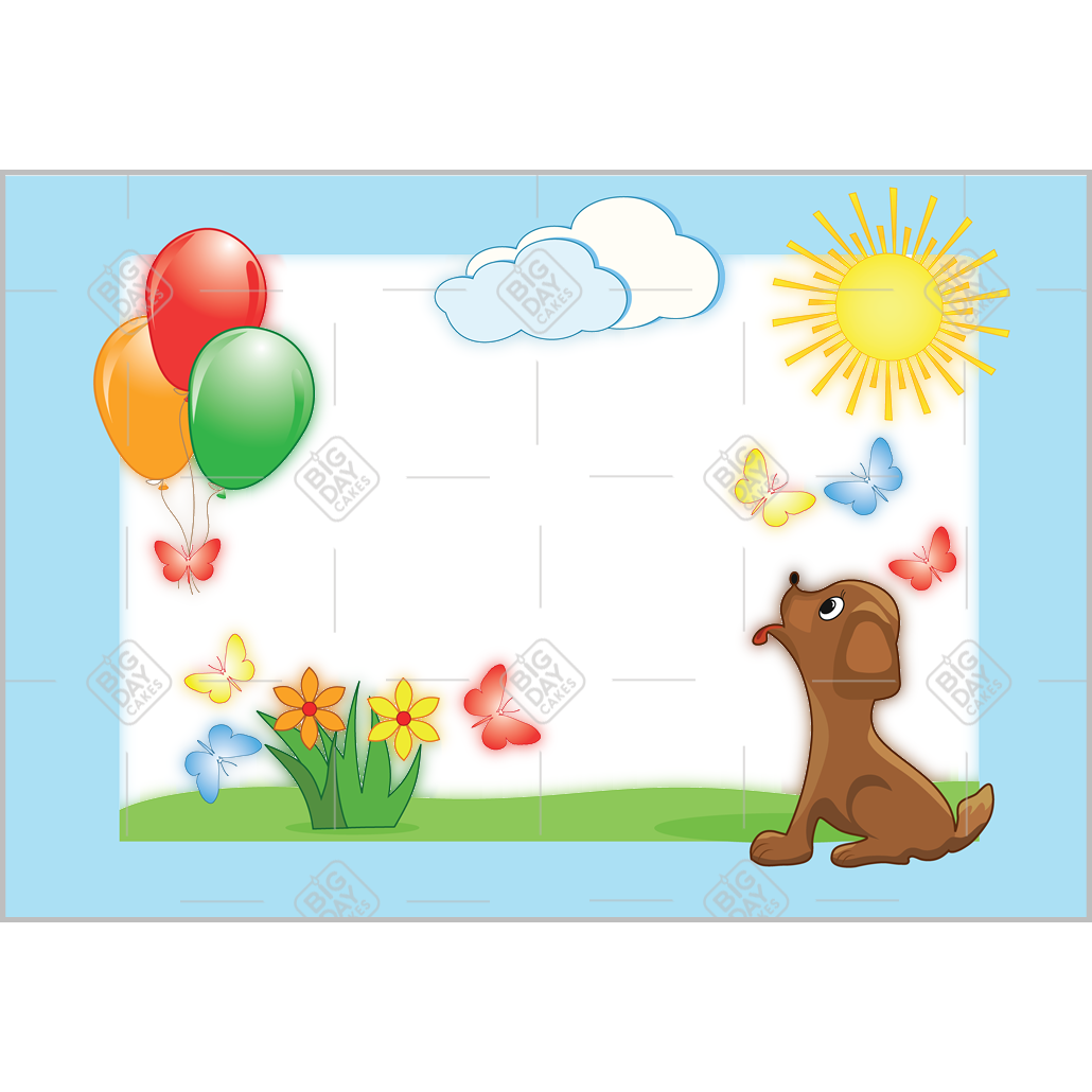 Puppies and balloons frame - landscape