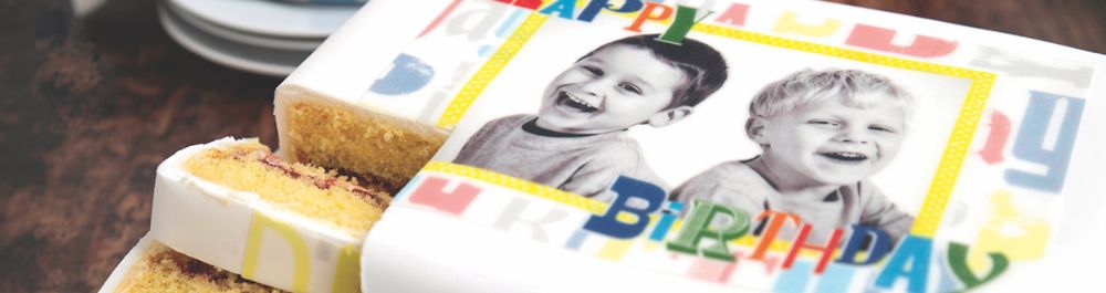 Our edible cake and cupcake toppers come in a range of designs for you to personalise with a photo or just a personal message.