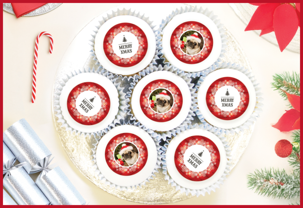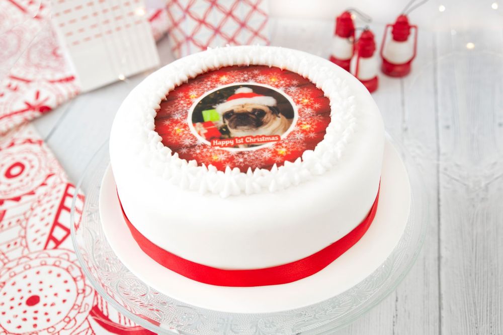 All year, we print cake toppers for a selection of raspberry and chocolate sponge cakes in ASDA and a range of pre-order cakes in Supervalu, which are perfect for birthday and celebration cakes, but if you want to personalise Christmas fruit cake, cupcake or mince pie, we recommend buying or making your own and designing a photo cake topper online.